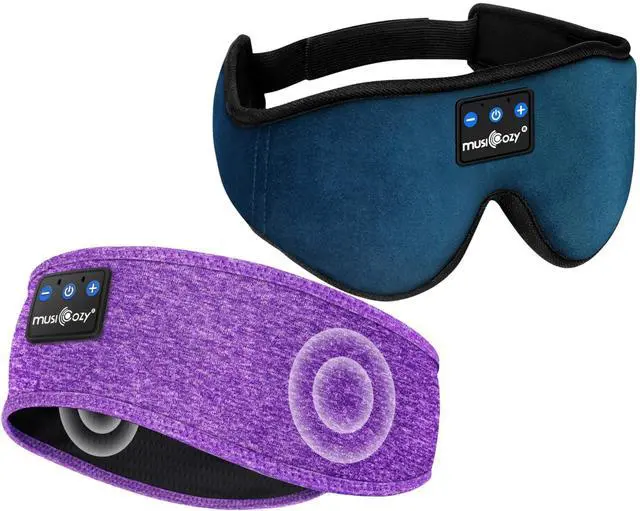 MUSICOZY Sleep Headphones Bluetooth Headband Sleeping Headphones Eye Mask, Wireless Music Sleep Earbuds Earphones for Side Sleepers Men Women Travel Cool Tech Gadgets Unique Gifts, Pack of 2