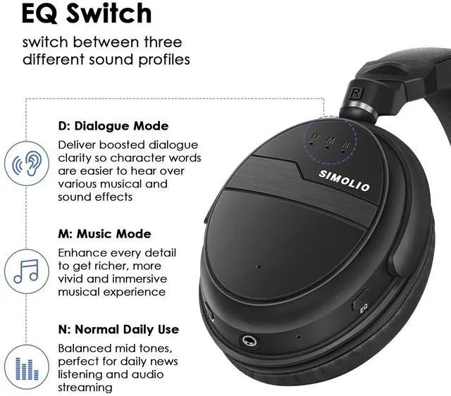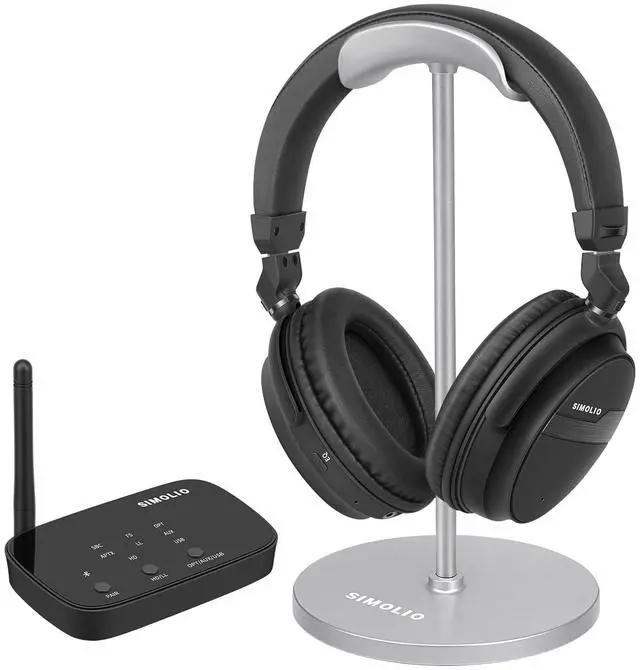 SIMOLIO Wireless Bluetooth Headphones with aptX Low Latency and aptX HD are designed for TV watching, with optimized lip-sync delay. This wireless headphones for