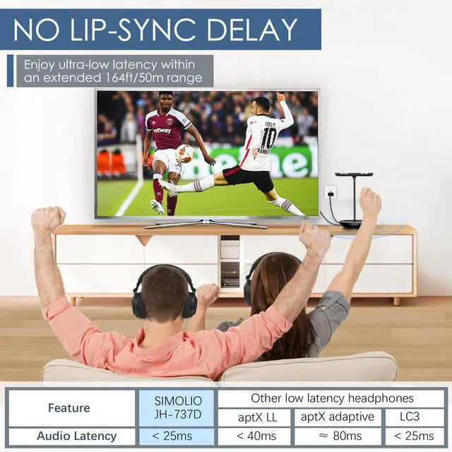 [Independent Volume Control, Tailored Sound for Every Listener] SIMOLIO 737D2 Plus includes two pre-paired TV headphones. Each pair of wireless headphones offers independent volume control, allowing you to enjoy your preferred sound level without affecting the volume on the other wireless TV headset. Perfect for couples or family members with different hearing preferences.