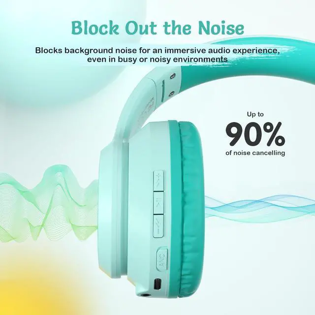 [Advanced Noise Cancellation - Protect Kids' Hearing] Featuring Hybrid ANC technology, these headphones effectively reduce background noise from airplane engines to busy environments, helping kids stay focused and relaxed. The built-in microphone ensures clear communication, while volume-limiting protection safeguards young ears.
