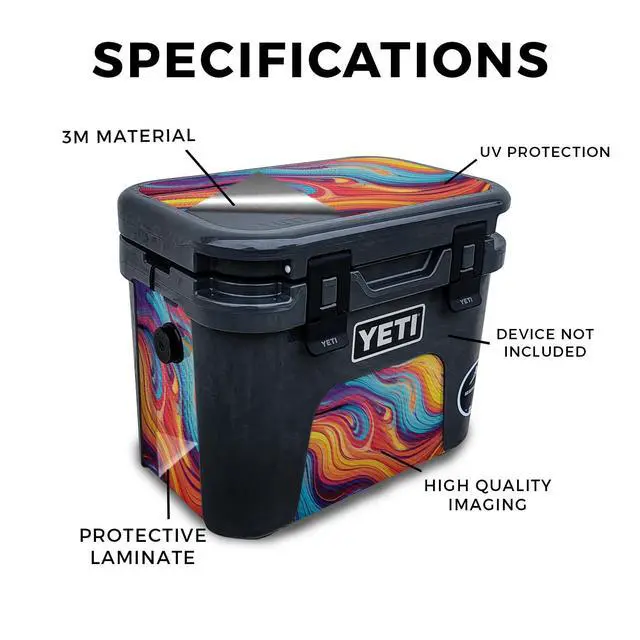 Product Deets: Vinyl decal sticker NOT A HARD CASE (duh! ) Ultra-Thin, Ultra-Durable, Stain Resistant Pick from a stash of sick designs Yeti Roadie 15 Hard Cooler not in the package