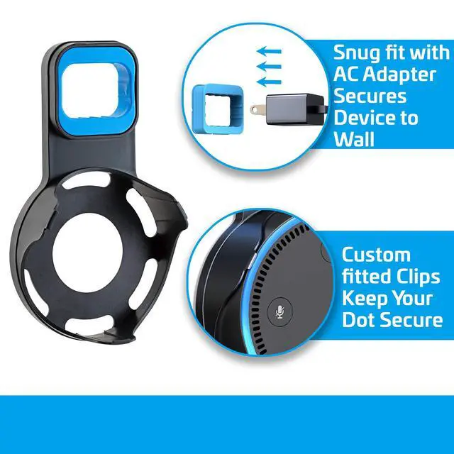 Designed for Echo Dot 2nd Generation This wall-mounted speaker holder keeps your smart assistant securely in place and off countertops. A custom-fit design ensures your device stays stable while improving microphone and speaker performance. ^^ Built-In Cable Management for a Clean Setup Includes an integrated cable routing system and a 7.75" USB charging cable that reduces cords, clutter, and bulk. Ideal for small spaces, apartments, offices, and rooms where a tidy look matters. ^^ Space-Saving Outlet Plug Holder Uses your Echo Dots power adapter as the anchor, letting the mount sit directly on the wall outlet with no tools or drilling needed.