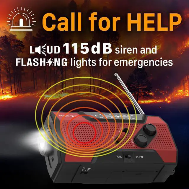[7400mWh (2000mAh) Power Bank Will Keep Devices Powered] The FosPower FOSPWB-2376 (A1) emergency radio incorporates a 7400mWh (2000mAh) power bank capable of providing emergency power to any small tablet or phone. ^^ [4 Power Sources - Power When You Need It] The radio's crank lever and solar panel are both capable of regenerating enough power to keep the radio, lights, and SOS alarm ready to go when you need it most. The rechargeable lithium-ion battery and AAA Batteries ensure you have power stored and ready. ^^ [2 Light Sources Always Powered] The emergency crank radio can also provide light.