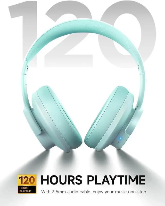 Picun B8 Bluetooth Over Ear Headphones, 120H Playtime with 3 EQ Modes, Low Latency, Hands-Free Calls, Deep Bass for Travel, Home, Office & PC (Cyan)