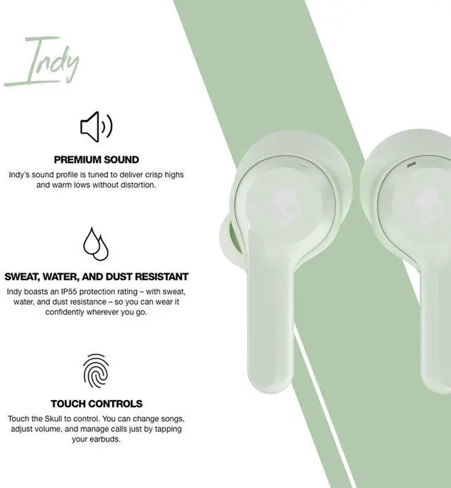 Connected and free Now you can have the truly wireless freedom you want in a look you can confidently rock. Indy lets you move seamlessly through your day with a secure fit and premium sound quality. The essentials perfected the jump to truly wireless audio has never been easier. From quickly pairing to your phone, to 16 hours of battery life, to a pocket-sized portable charging case, Indy makes living life without wires The simple experience its meant to be. No wires, no worries with a sleek, truly wireless design, Indy keeps you connected to your music and content without the hassle of any wires whatsoever.