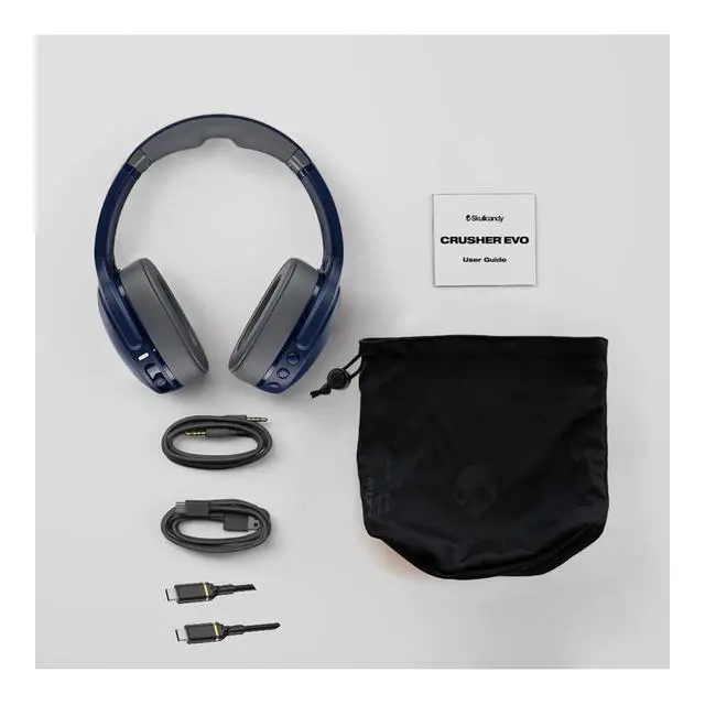 Skullcandy Crusher Evo Bluetooth headphones deliver powerful multi-sensory bass, noise isolating over-ear comfort and up to 40 hours of battery life. Enjoy clear calls, easy on-ear button controls and an extra 3ft USB-C to USB-C cable for flexible charging, perfect for travel, work and daily music.