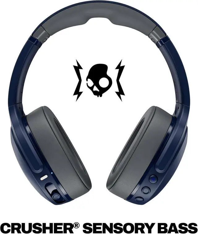 Skullcandy Crusher Evo Wireless Bluetooth Headphones Blue/Grey, Multi-Sensory Bass, 40Hr Wireless, Noise Isolating Over-Ear, Mic for iPhone/Android, Extra 3ft USB-C to USB-C Charging Cable