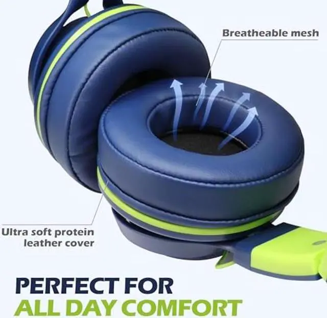 AILIHEN C8 Headphones Wired, On-Ear Headphones with Microphone and Volume Control, Corded 3.5 mm Headset for Boys Girl School Smartphones Chromebook Laptop Computer Tablets Airplane Travel (Blue Green)