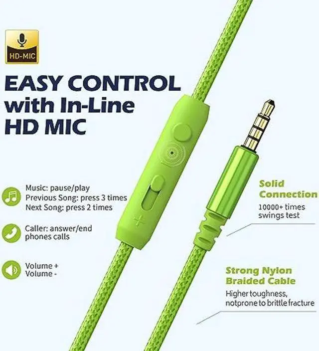 Widely Compatible: with a flexible and durable 47 inches braided cord and sturdy 3. 5 mm stereo Plug. Will not kink, twist or break under normal use. Use with all your favorite devices like cellphones, laptop, computer, Chromebook, MP3, MP4 and other Audio devices