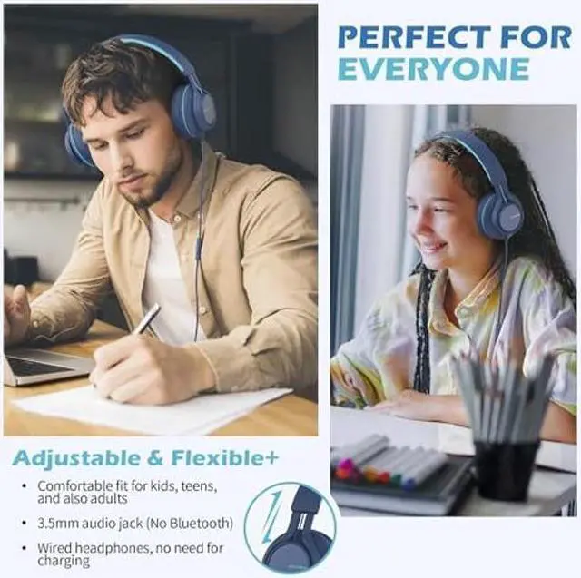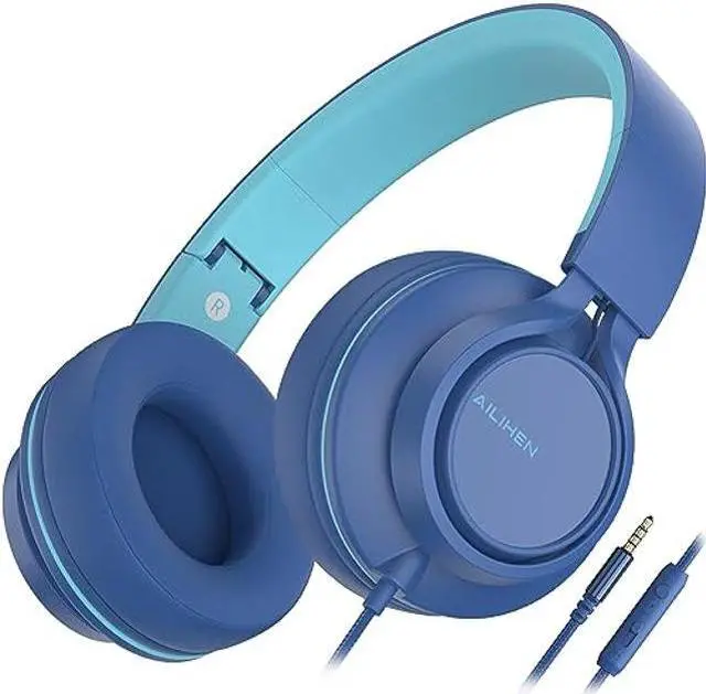 AILIHEN C8 Headphones Wired, On-Ear Headphones with Microphone and Volume Control, Corded 3.5 mm Headset for Boys Girl School Smartphones Chromebook Laptop Computer Tablets Airplane Travel (Indigo)