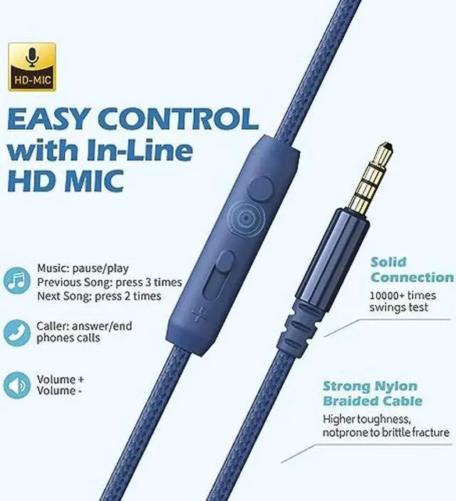 Widely Compatible: with a flexible and durable 47 inches braided cord and sturdy 3. 5 mm stereo Plug. Will not kink, twist or break under normal use. Use with all your favorite devices like cellphones, laptop, computer, Chromebook, MP3, MP4 and other Audio devices