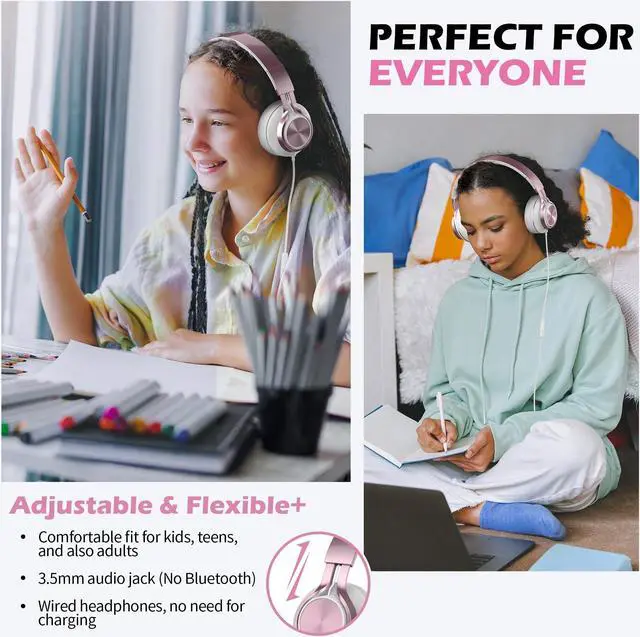 AILIHEN C8 Girls Headphones, On-Ear Headphones Wired with Microphone and Volume Control Foldable Corded Stereo 3.5mm Headset for Girls School Chromebook Laptop Computer PC Tablets Travel (Rose Gold)