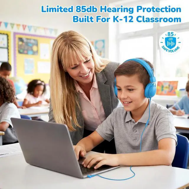 ^^ SAFETY ALWAYS: The kids' headphones are made of non-toxic materials and meet CPC and CPSIA standards. The built-in volume-limiting circuitry keeps the sound below 85dB, meeting the WHO's recommended level for preventing hearing damage.