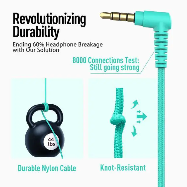 ^^ HIGH-QUALITY & DURABLE: These headphones are made with a thickened nylon cable and gold-plated jacks, ensuring durability. They can withstand up to 44 lbs of weight and maintain a stable connection even after over 8, 000 uses. Invest in a reliable and long-lasting headset for your child's education.