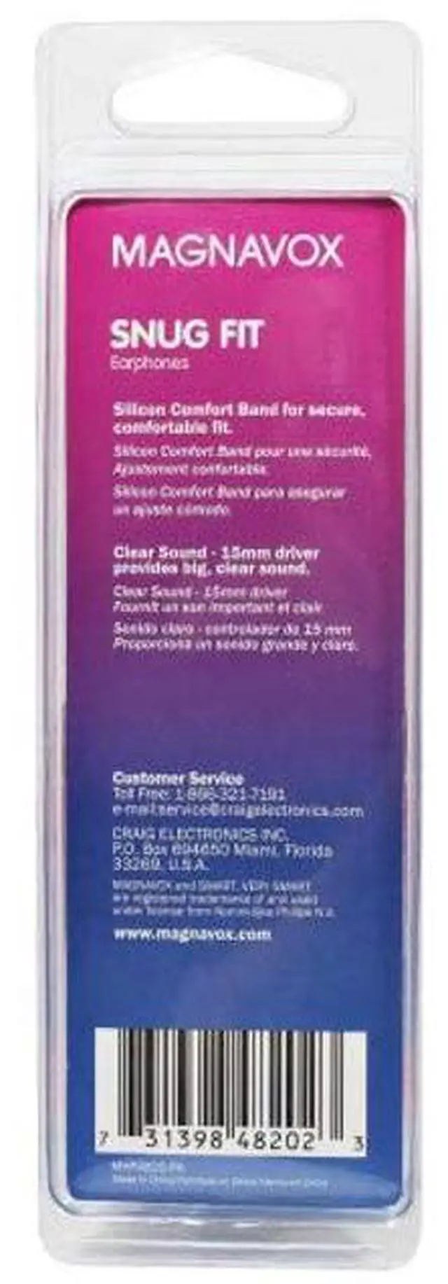 We all know after a full day of wearing poor quality headphones how sore our ears can be! Magnavox have combatted this by creating headphones with a silicone band for enhanced comfort, whilst not compromising sound quality. Silicone ear in band for comfort 4ft rubberized cable to keep up with your lifestyle Stereo straight pin nickel plated 3.5 mm plug to fit most devices