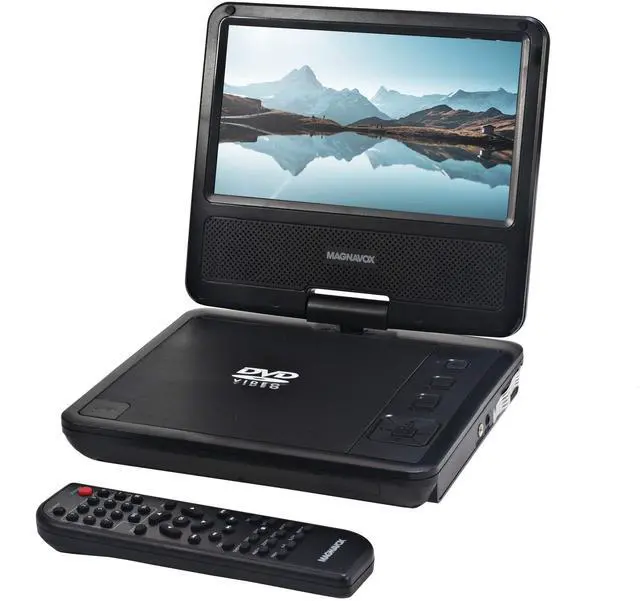 7 inch TFT display Swivel screen design ^^ DVD/CD/CD-R/CD-RW/JPEG compatible ^^ Built-in stereo speakers Built-in 2.5 hours rechargeable battery ^^ 3.5 mm headphone jack AV out jack ^^ AC operation (AC adapter included)