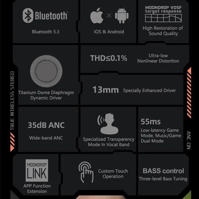 Bass Control, Easy Switching of Three Bass Tunings: Using the MOONDROP Link APP, users can select one of three bass tunings, "Monitor", "Reference" and "Basshead".