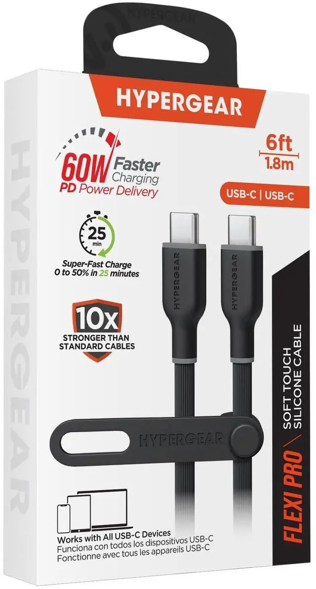 The soft-touch silicone material helps prevent tangles and enhances flexibility, making it comfortable to use in any setting. The 6ft usb c cable fast charging design provides extra length for added convenience, and it comes with a silicone cable strap for easy organization. Whether youre charging at home, in the office, or on the go, the usbc to usbc cable 6ft helps keep your setup tidy and your devices powered when you need them. HyperGear practical charging solutions made for your everyday tech routine.
