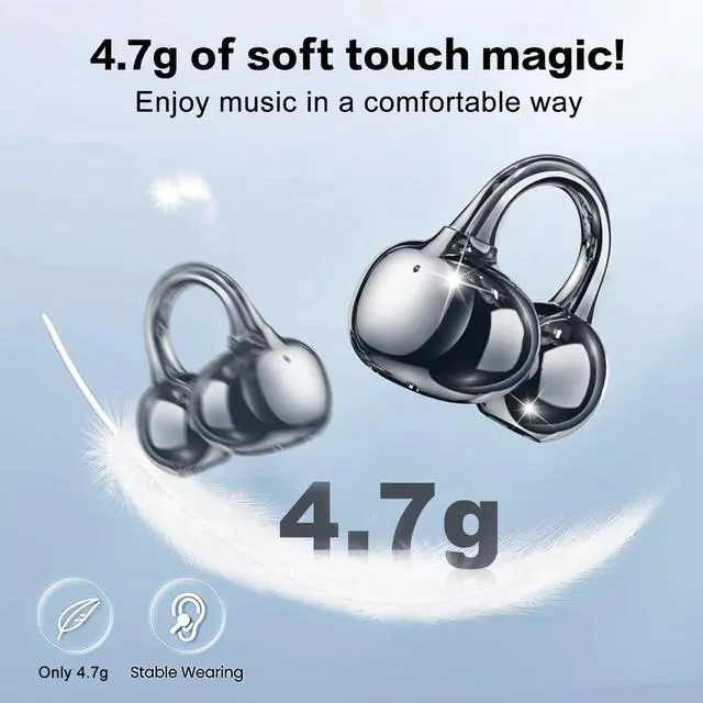 C-Shaped Bridge Design: Experience zero pressure with Zihnics upgraded C-shaped bridge design, engineered to fit every ear shape snugly. Weighing a mere 4.7 g, these clip-on earbuds offer feather-light, pain-free wear, perfect for all-day use. ^^