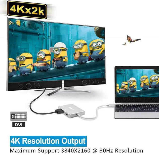 4 in 1 USB-C HUBThis USB C to DVI/VGA/HDMI adapter allows USB C enabled devices to connect with HDMI/VGA/DVI-equipped devices ( such as monitor, projector, TV) for multiple monitors. Plug and Play, Ideal for Office, Conference, Presentation, Home-theater entertainment ^^ Crystal Clear ImagesThe HDMI & DVI ports deliver high-definition video in up to 4K UHD ( 3840 x 2160 ), which is 4 times clearer than 1080P. With Monodeal USB 3.1 Type C to DVI/HDMI/VGA adapter, you can enjoy vivid images, easy to create a home theater, and make presentations at meetings ^^ DVI PortBuilt-in advanced IC chip converts USB-C digital signal to DVI signal; The USB Type-C source should support the USB Type-C Alt Mode.