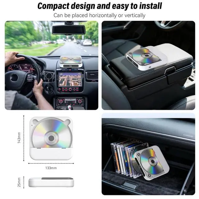 ^^ USB/AUX Connectivity: This cd player for car supports both USB and AUX connections. Its compact, stylish design fits seamlessly into any corner of your vehicle. With a hold button and anti-shake function, enjoy uninterrupted playback whether in your car or on the go in your backpack! ^^ CD Player with
