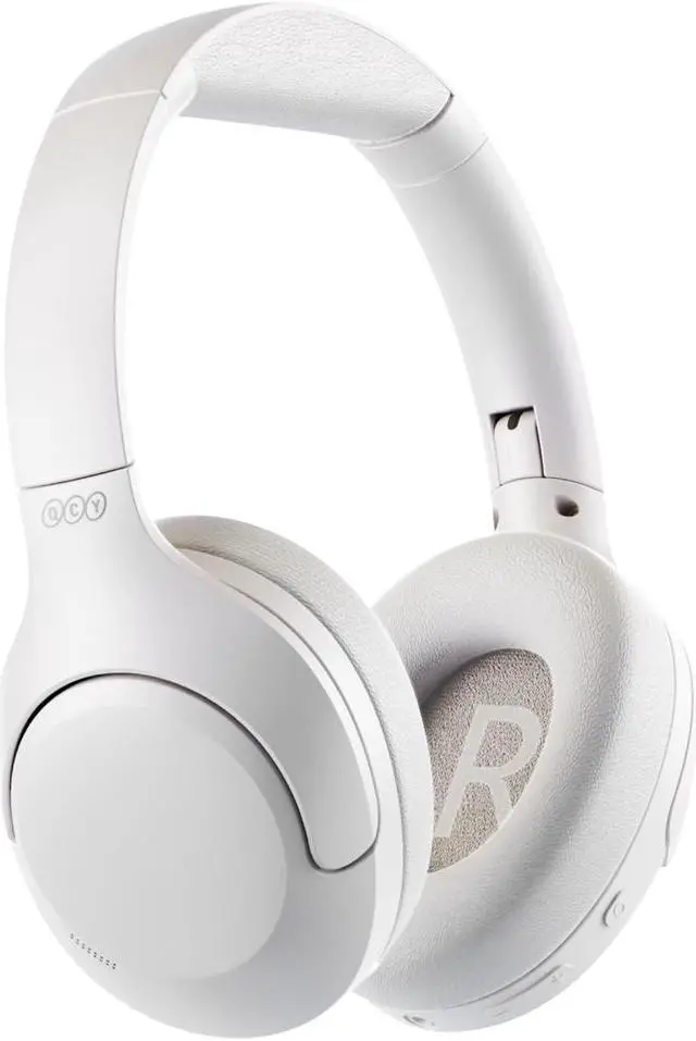 QCY H3 LITE Active Noise Cancelling Headphones, Wireless Over Ear Bluetooth Headphones, 60H Playtime, Muti-point Connection, Bluetooth 5.3 Headsets for Travel, Home Office(White)