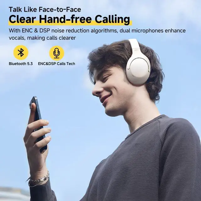 [(CRYSTAL CLEAR CALLS & BLUETOOTH 5.3)] With ENC & DSP noise reduction algorithms, dual microphones enhance vocals, making calls clearer. Advanced Bluetooth 5.3 technology enables faster transmission speeds and stable connectivity for smooth music playback.