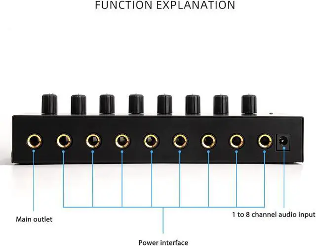 Channels: There are 8 headphone output channels and 1 input channel, and the volume of each output channel can be independently controlled.