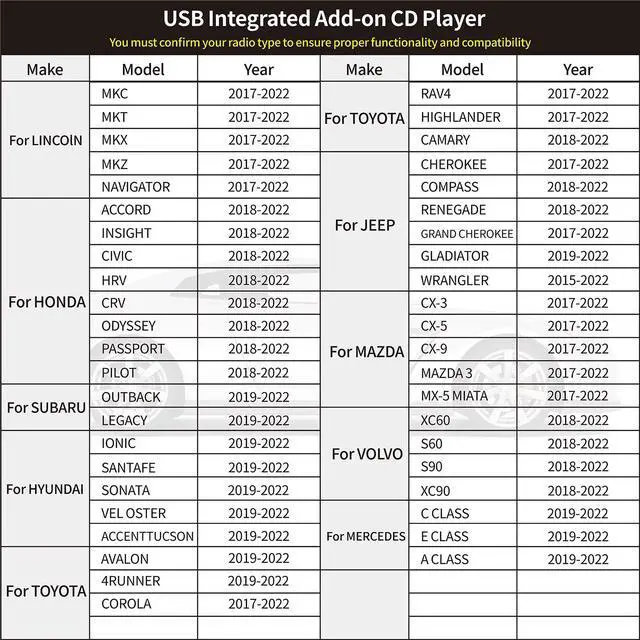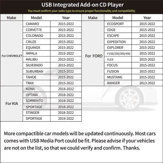 This easy to install USB CD Player is a quality solution enabling you to enjoy your Music CDs through your vehicle's factory radio system.