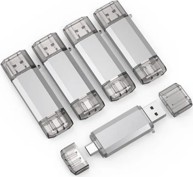RAOYI 5 Pack 64GB USB C Flash Drive, 2 in 1 USB 3.0 Type C Dual OTG Metal Thumb Drive Jump Drive Memory Stick with Keychain Suitable for USB-C Smartphones, MacBook, Computers and Tablets (Silver)