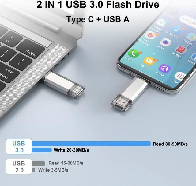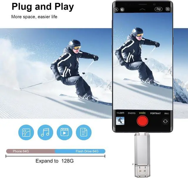 [(Dual Connectors & Large Capacity)] : The USB C flash drive comes with dual connectors. It features a fast USB-A 3.0 and type-C interface at its two end. The type-C port can only work on phones/tablets with OTG function. 64GB high capacity meets your most needs of daily use. NOTE: The default format system of the 64GB usb stick is exFAT.