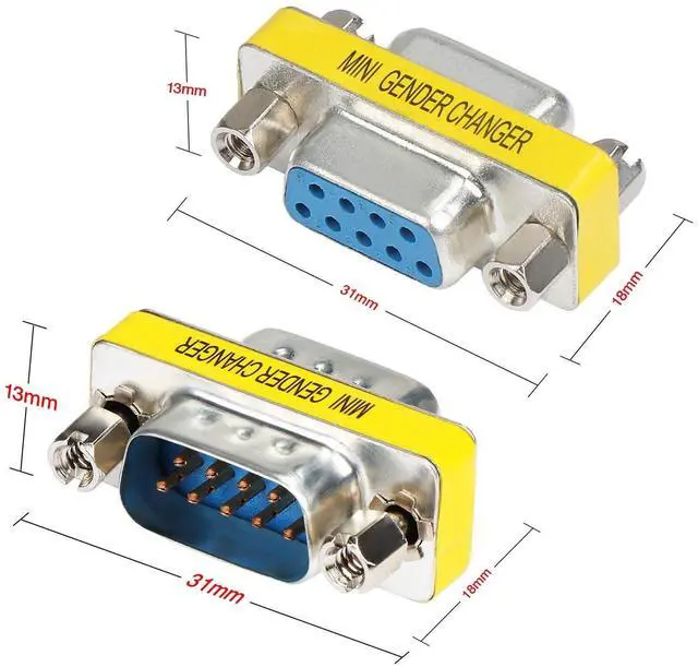 This is a fast and economical method of changing the gender on "D" type ports. Connect two female serial cables together, or convert a9 pin female connection to a 9 pin female connection.