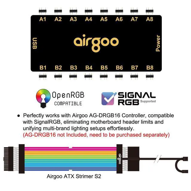 AG-DRGB16 Controller: Recommend to purchase our AG-DRGB16 Controller (Not Included) separately, compatible with SignalRGB, 16-Port independent channel for complex layered lighting setups, eliminating motherboard header limits and unifying multi-brand lighting setups effortlessly.