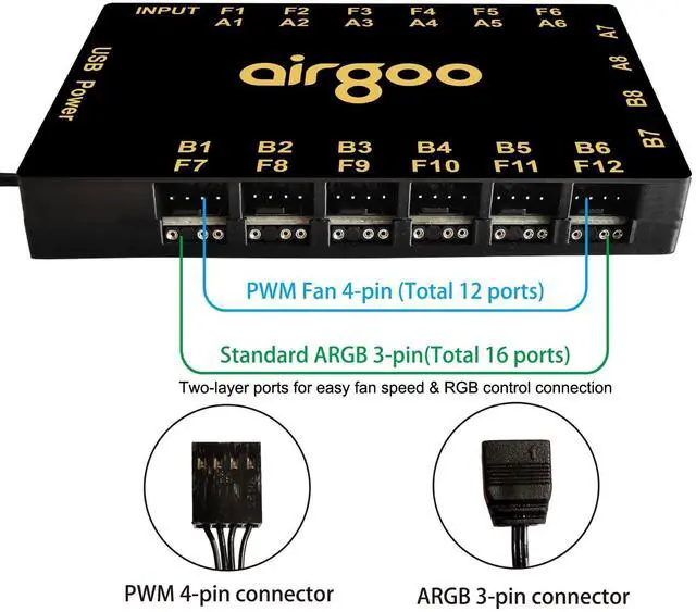 PWM: Features 16 channels of 5V 3-pin ARGB for individual lighting control (each channel supports up to 256 LEDs) and 12 channels of 12V 4-pin PWM for synchronous fan speed regulation. It meets the needs of complex PC lighting setups and efficient cooling system adjustment at the same time. ^^ 16-Port RGB Expandability & SignalRGB