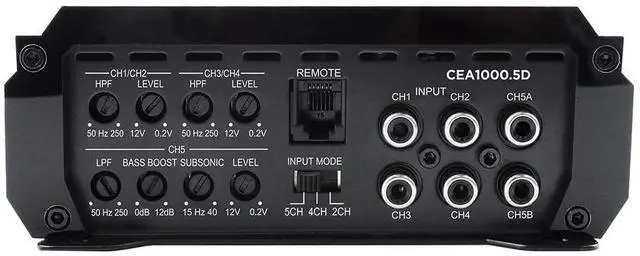 AMPLIFIER: The Orion CEA 1000.5D is a Class-D full-range 5-channel amplifier designed to power an entire car audio system from a single chassis. Delivering up to 1000 watts RMS, it provides clean, efficient power for speakers and a dedicated subwoofer channel. ^^ COMPLETE SYSTEM POWER IN ONE AMP: Provides 75W RMS x 4 at 4 ohms, 125W RMS x 4 at 2 ohms for mids and highs, plus 300W RMS x 1 at 4 ohms and 500W RMS x 1 at 2 ohms for subwoofer output, making it ideal for full front/rear plus subwoofer setups.