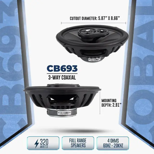 ^^ SPECIFICATIONS: Featuring a 4-ohm impedance, the Orion CB693 efficiently handles up to 320W of peak power. Its wide frequency response of 80Hz-20kHz delivers rich, detailed sound, while the 88 dB sensitivity ensures clear, crisp audio. This makes it an excellent choice for audiophiles seeking superior in-car sound quality.