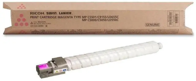 Ricoh genuine magenta toner cartridge, has an estimated yield up to 17, 000 pages at 5%. It is compatible with the devices Ricoh Aficio MP C4000, MP C4000SPF, MP C4501, MP C5000, MP C5501. This magenta toner cartridge supplies ensure outstanding copy clarity and machine reliability in even the most demanding environments. Manufacturer part number 841454, 841286