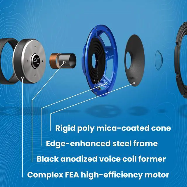 -: Featuring a complex FEA-designed high-efficiency motor and black anodized voice coil former, these 6.5 inch speakers deliver impressive volume at 100W RMS recommended amplifier power (up to 125W max) with superior heat dissipation.
