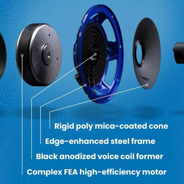 -: Featuring a complex FEA-designed high-efficiency motor and black anodized voice coil former, these 6.5 inch speakers deliver impressive volume at 75W RMS recommended amplifier power (up to 100W max) with superior heat dissipation.