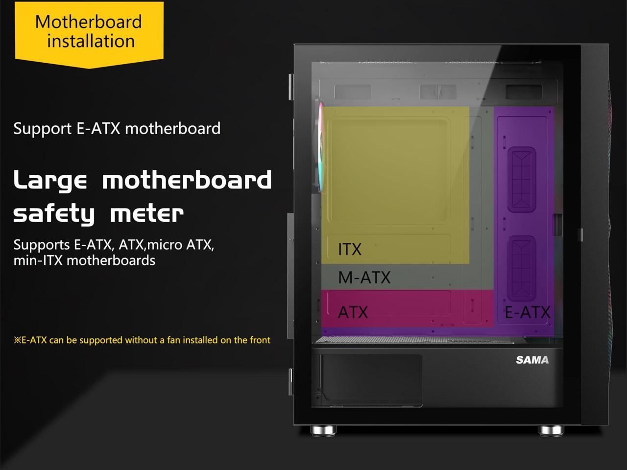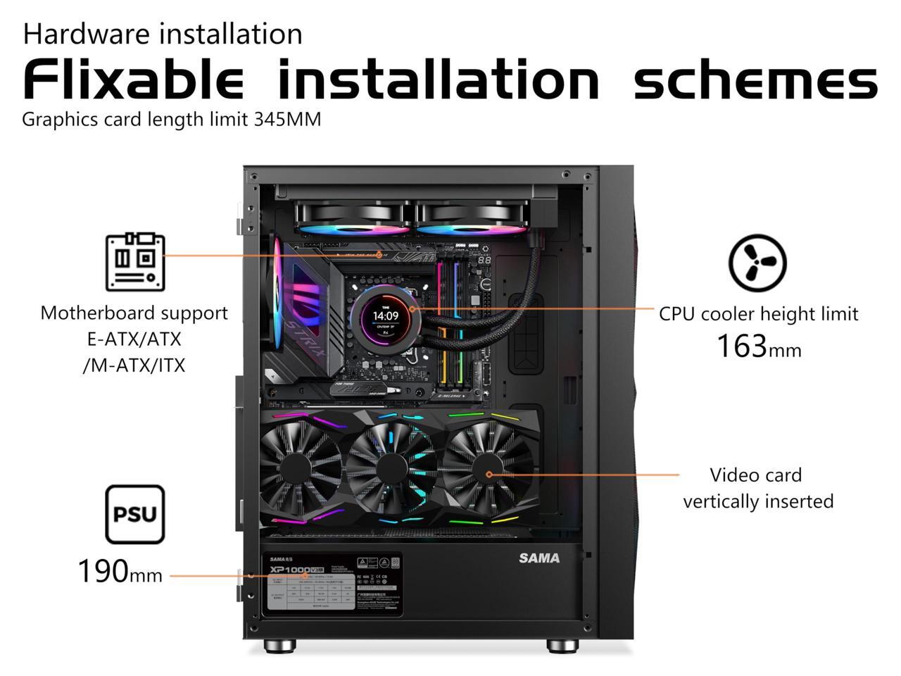 Enough space for cable management, can accommodate 8 120mm or 5 140mm fans, and can install 360mm cold exhaust Backward compatibility. Provide Portable storage device rack to meet storage requirements.