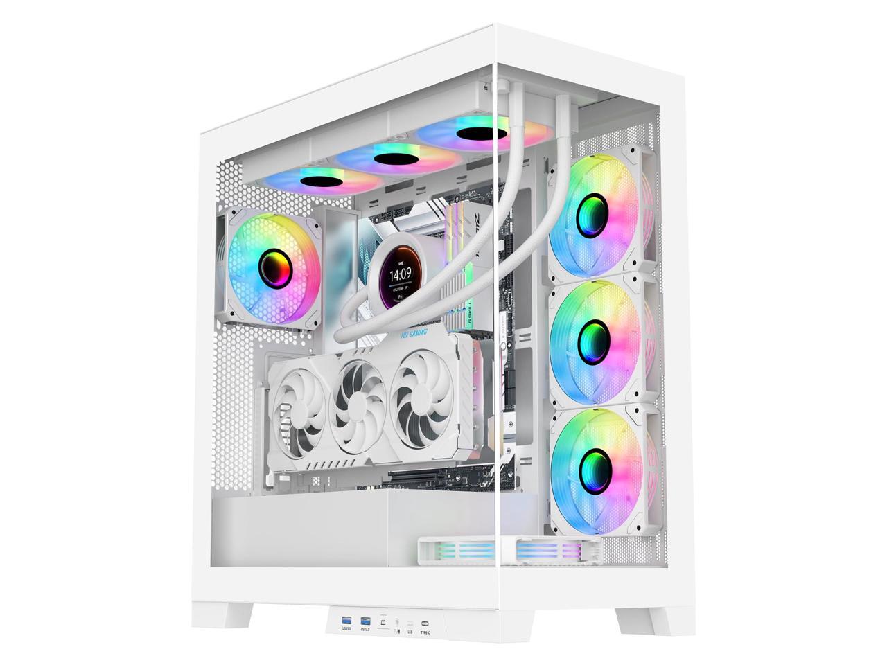 SAMA NEVIEW 4503 Mid Tower PC Case with Dual Tempered Glass Panels, 4×120mm ARGB Fans Pre-Installed, High Airflow ATX PC Case for Case PC Gaming, USB 3.0×2, Type-C Port, Supports Top 360mm AIO White