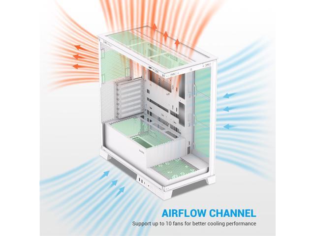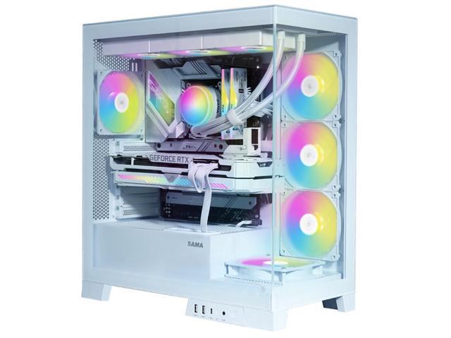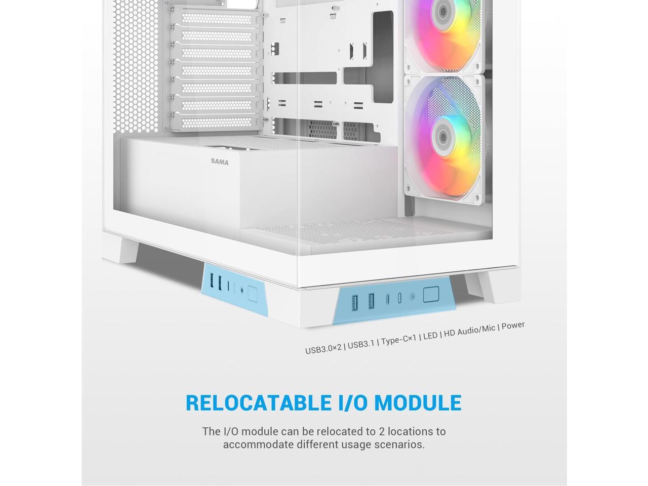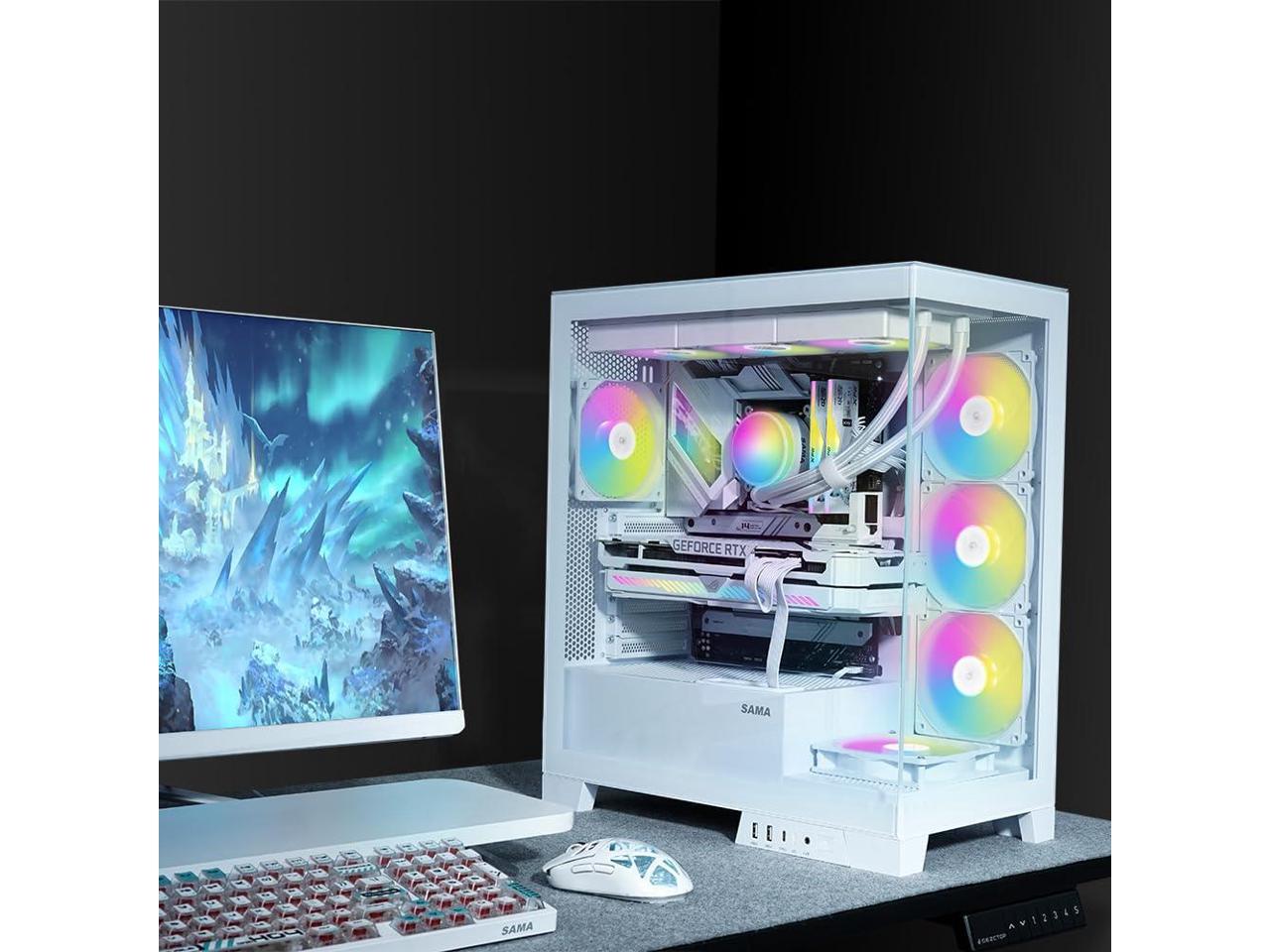 - 270° Panoramic View with Display Showcase: The SAMA V50 mid tower case features dual-layer tempered glass panels and a removable front column, offering a stunning 270° unobstructed view of your build. It also includes a unique display compartment for action figures or collectiblesideal for gamers who want to personalize their setups.
