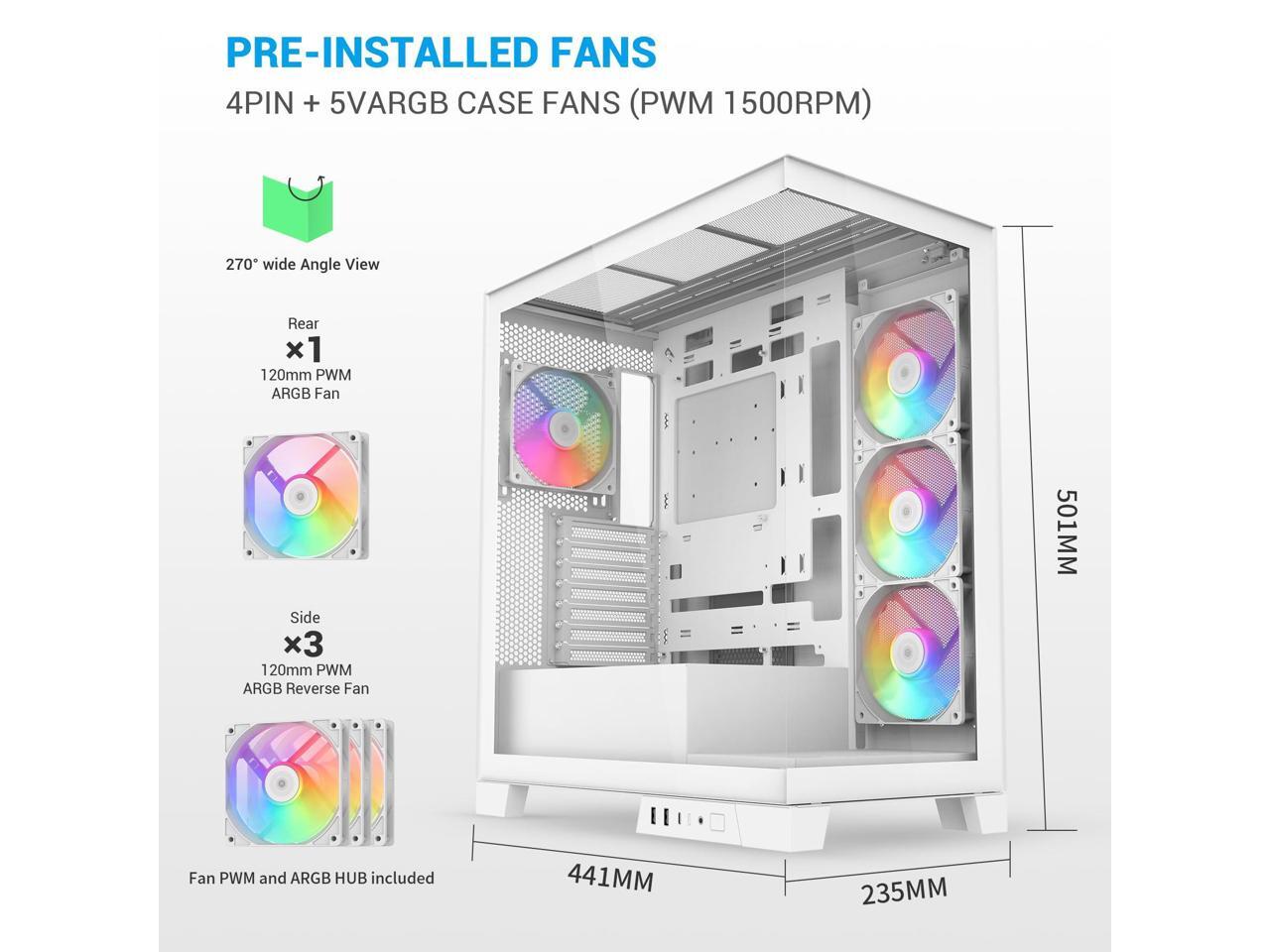 - Exceptional Cooling with 4 Pre-Installed ARGB Fans: Designed for high-performance systems, this ATX case includes 4 ARGB PWM fans and supports 360mm radiators on the top and side. With CPU cooler clearance up to 181mm, it ensures your components stay cool even during demanding workloads.