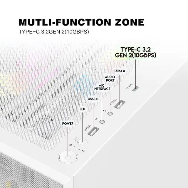 Extreme Cooling Potential Engineered for high-airflow mid tower pc case performance, it supports 3x140mm/3x120mm front fans or 2x160mm variants. The fine mesh front panel and optimized internal layout keep temperatures low even during intense ga