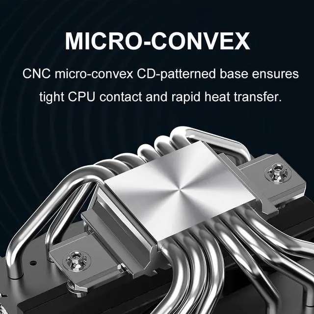 Advanced Heat Transfer with CNC Copper Base : Six composite heatpipes are tightly soldered to a CNC-machined micro-convex copper base, ensuring efficient thermal conductivity and stable 265W TDP cooling.