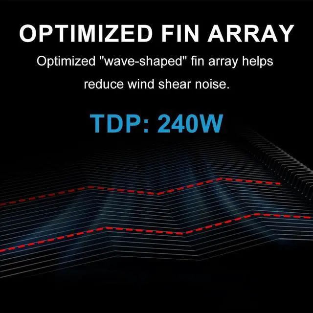 Direct Heat Conduction: A smooth, full-coverage copper base ensures rapid heat transfer from the CPU, maintaining stable thermal performance under load. ^^ Hybrid Fin Array with Wave Design for