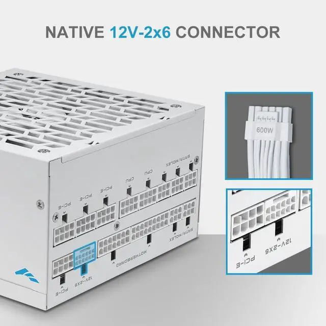 ^^ Built to LastEquipped with high-quality capacitors and tested with a mean time between failures of one hundred thousand hours, ensuring dependable performance during intensive gaming and continuous workloads. ^^ Ready for Next-Gen HardwareIncludes a native twelve-volt two by six connector delivering up to six hundred watts, along with three PCIe six plus two pin cables, making it suitable for current and future high-performance PC builds.