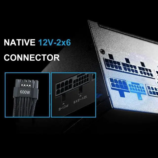 ^^ Built to LastEquipped with high-quality capacitors and tested with a mean time between failures of one hundred thousand hours, ensuring dependable performance during intensive gaming and continuous workloads. ^^ Ready for Next-Gen HardwareIncludes a native twelve-volt two by six connector delivering up to six hundred watts, along with three PCIe six plus two pin cables, making it suitable for current and future high-performance PC builds.