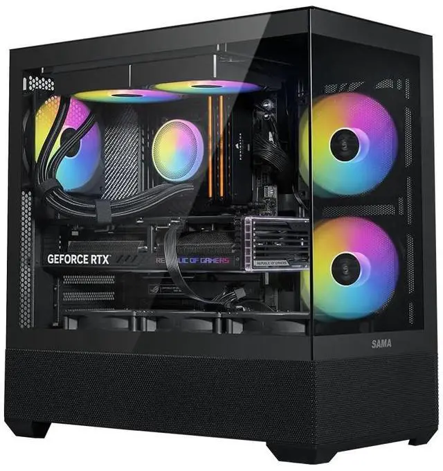 Panoramic Tempered Glass Design: Showcase your build with dual tempered glass panels offering a breathtaking 270 view of your RGB-lit components. The SAMA V40 ATX PC case is perfect for enthusiasts who want to display their custom PC setup in style, while the dual-chamber layout enhances airflow and organization. ^^ Spacious Interior for