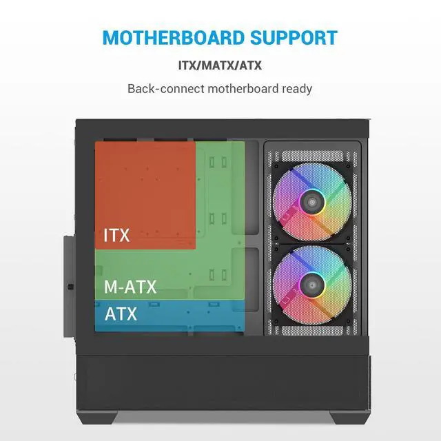 High-End Builds: The SAMA V40 mid tower ATX case supports ATX, Micro-ATX, and ITX motherboards, with ample room for GPUs up to 410mm and CPU coolers up to 181mm. Its 7 expansion slots and support for multi-GPU configurations make it ideal for gaming setups or high-powered workstations. ^^ Enhanced Vertical Airflow & Dual-Chamber Design: Designed with a unique dual-chamber layout and vertical airflow system, the SAMA V40 mid tower PC case maximizes cooling efficiency by directing airflow from bottom to top. This design keeps temperatures low during intense gaming or multitasking, ensuring stable performance. ^^ Modern I/O Panel with